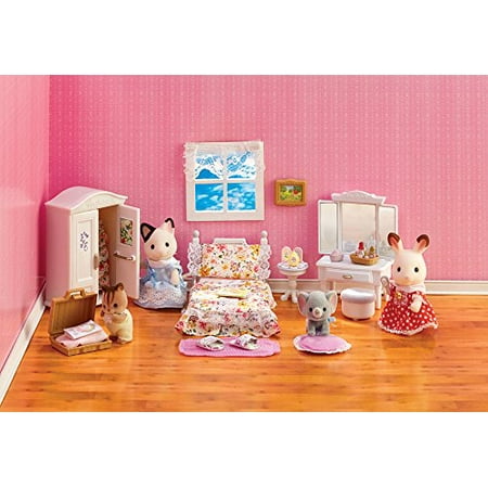 The globe can be spun around. It also has a drawer you can pull out. Perfect bed set for critter girls! Calico critters deluxe children's bedroom set the deluxe children's bedroom set is an essential furniture set for any calico critters home. The mattress is a polka dotted fabric/canvas. You can return the item for any reason in new and unused. Set features all theessential bedroom furniture pieces like bed, vanity, end table and armoireplus lots of detailed accessories. The dark wood brings a great richness to any calico critters home. Calico critters deluxe bathroom set. Calico critters deluxe floral bedroom set 4.8 out of 5 stars 2,188. *suitable for ages three years and above. The set comes with a lovely bed, dressing table, shelf, and table in white and pink. Calico critters deluxe living room set 4.8 out of 5 stars 4,223.